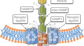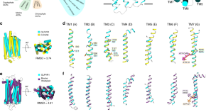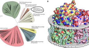 Nucleocytoplasmic Large DNA Viruses (NCLDV) that infect algae encode two distinct families of microbial rhodopsins. Here, the authors characterise two proteins form the viral rhodopsin group 1 OLPVR1 and VirChR1, present the 1.4 Å crystal structure of OLPVR1 and show that viral rhodopsins 1 are light-gated cation channels.