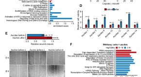 Ovarian cancers frequently develop resistance to therapy. Here, using transcriptomics, proteomics, and preclinical models to analyse paired ascitic fluids before and after chemotherapy in ovarian cancer patients, the authors discover that extracellular secretion and spliceosomal components contribute to therapy resistance, enhancing the DNA damage response in recipient cancer cells.