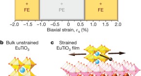 Ferroelectric ferromagnets — materials that are both ferroelectric and ferromagnetic — are of significant technological interest. But they are rare, and those that do exist have weak ferroelectric and ferromagnetic properties. Recently a new way of fabricating such materials was proposed, involving strain from the underlying substrate. This route has now been realized experimentally for EuTiO3. The work shows that a single experimental parameter, strain, can simultaneously control multiple order parameters.