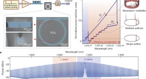 • Kerr frequency combs are well suited for high-capacity data transmission with phase-sensitive modulation formats. This work demonstrates error-free transmission with data rates of up to 1.44 Tbit s−1, spectral efficiencies of up to 6 bit s−1 Hz−1 and transmission distances of up to 300 km.