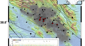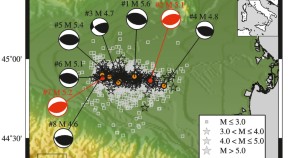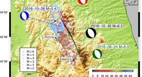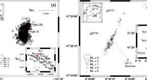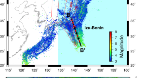 The caldera of Campi Flegrei volcano shows space-dependent rheological behaviour due to the interplay between overpressure sources and geological structures, according to 3D tomography of b-values and correlation with subsurface structures.