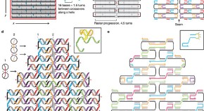 A robust, versatile, one-pot bottom-up nanotechnology fabrication method uses a few-hundred short DNA strands to 'staple' a very long strand into two-dimensional structures of 100 nm in diameter and resembling any desired shape, such as squares, 'nanofaces' and stars.