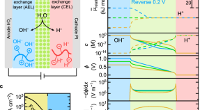 • It is important yet challenging to elucidate the mechanism of water dissociation in bipolar membrane electrolysers. Here the authors show how water dissociation is accelerated by electric-field-focusing and catalytic effects and uncover design principles to optimize the performance.
