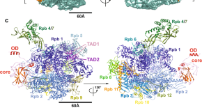 Liou et al. report a 4.6 Å resolution structure of the human p53/ RNA polymerase II assembly, using single particle cryoelectron microscopy. This study suggests that p53’s functional domains regulate the DNA binding activity of RNA polymerase II, providing insights into p53-regulated gene expression.