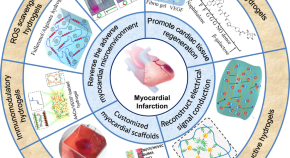 Various changes occur in the myocardial infarcted microenvironment. An in-depth understanding of these changes has enabled the development of the functional hydrogels for cardiac repair. This article introduces recent advance in functional hydrogels for the treatment of myocardial infarction, including MMP-responsive hydrogels, ROS-scavenging hydrogels, immunomodulatory hydrogels, conductive hydrogels, vascularized hydrogels, and 3D printed hydrogels. Future perspective is also presented.