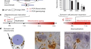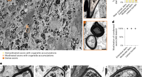It remains unclear how myelin is targeted specifically to axons while sparing neuronal cell bodies and dendrites, or how small gaps, the nodes of Ranvier, are left unmyelinated along the axon. In this study, authors used genetic analyses in zebrafish and mice to demonstrate that molecules of the paranodal axo-glial junction act jointly with molecules of the internodal domain to regulate axonal interactions and myelin wrapping, and that in the combined absence of these molecules myelin sheaths are misplaced.