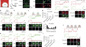 Super-resolution imaging provides direct evidence in live cells that membrane fusion and fission are mediated through an intermediate hemi-fused structure, where fusion and calcium/dynamin-dependent fission mechanisms compete to determine the transition of the intermediate to fusion or fission.