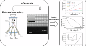 We report on the fabrication and electrical characteristics of In2Te3 thin films grown on h-BN using molecular beam epitaxy(MBE). Cross-sectional scanning transmission electron microscopy images showed an atomically clean and abrupt interface between In2Te3 and h-BN substrates. The MBE-grown In2Te3 electronic devices exhibited superior electrical properties compared to previously reported In2Te3 field effect transistors(FETs) and In2Te3-based Schottky diodes.