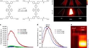 • Near-infrared (NIR) fluorescence imaging >1,000 nm allows deep tissue imaging, but available organic dyes display poor brightness and temporal resolution. Here, the authors synthesize a NIR dye that, upon binding serum proteins, exhibits a 110-fold increase in intensity, giving an 11% quantum yield.