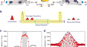 A quantum walker on a hexagonal glued array of optical waveguides is made inside a glass substrate. The optimal hitting time increases linearly with the layer depth, giving a quadratic speed-up over the hitting performance by classical random walks.