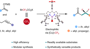 Although several transition-metal carbene complexes have been isolated and used for catalytic carbene transfer reactions, few metal difluorocarbene complexes have been reported. Now, the synthesis, characterization and reactivity of isolable copper(I) difluorocarbene complexes has been reported, which has enabled the development of a copper-catalysed difluorocarbene transfer reaction to access fluorinated compounds from simple chemical feedstocks.