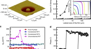 Shape-memory materials hold great potential for actuators and aims to improve them focus on increasing the maximum strain that they exhibit in response to a stimulus. Here the authors demonstrate a large shape-memory effect in bismuth ferrite, observing a maximum strain of up to 14%.
