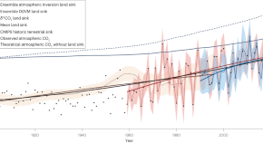 The terrestrial biosphere stores carbon in a land carbon sink, offsetting emissions of carbon into the atmosphere. This Review demonstrates that the magnitude of the land carbon sink has increased over time, but that its stability in the future is less clear and depends on climate impacts and effective implementation of nature-based solutions.