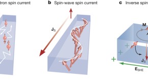 An insulator does not conduct electricity, and so cannot in general be used to transmit an electrical signal. But an insulator's electrons possess spin in addition to charge, and so can transmit a signal in the form of a spin wave. Here a hybrid metal–insulator–metal structure is reported, in which an electrical signal in one metal layer is directly converted to a spin wave in the insulating layer; this wave is then transmitted to the second metal layer, where the signal can be directly recovered as an electrical voltage.