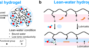 Excess water in hydrogel-based zinc ion batteries causes side reactions, but reduced water content results in low conductivities. Here, authors develop a lean-water hydrogel based on molecular lubrication mechanism for fast ion transportation, extended stability, and reversible Zinc plating/stripping.