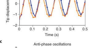 Coupled liquid-crystalline network oscillators incorporating light-responsive molecules show synchronized motion when stimulated by light. This behaviour resembles that of synchronized clock pendulums and may find uses in advanced soft robotics applications.