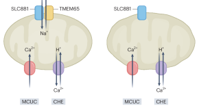 • Garbincius et al. show that TMEM65, a mitochondrial transmembrane protein of unknown function, has a central role in efflux of calcium ions from the mitochondria. Mitochondrial calcium efflux is crucial for maintaining mitochondrial calcium levels, which is important for metabolic homeostasis and mitochondrial health.
