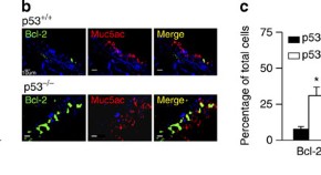 p53 suppresses the proto-oncogene, Bcl-2, but the mechanism of this regulation is unclear. Here the authors show that p53 regulates bcl-2 mRNA half-life by interacting with its 5′ untranslated region, which has implications on Bcl-2 activity and mucous production in the lung.