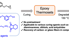 The degradation of various thermosetting epoxy resins prepared from bisphenol A diglycidyl ether as a typical epoxy agent and various curing agents, such as diamino arenes, dithiols, and acid anhydrides proceeded smoothly with sodium tert-butoxide in 1,3-dimethyl-2-imidazolidinone (DMI) solvent at 150 °C to form bisphenol A in high yields. Amide solvents effectively promoted depolymerization and allowed insoluble cross-linked thermosetting epoxy resins to undergo the reaction.