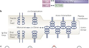 Nectins and nectin-like molecules (Necls) are transmembrane cell adhesion molecules that have recently been shown to have a variety of cellular functions. They have roles in cell–cell adhesion, differentiation, polarization and survival, as well as in contact inhibition of cell movement and proliferation.