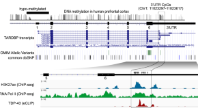 In order to assess the effects of aging on the autoregulation of TAR DNA-binding protein 43 (TDP-43) and the potential effects of this on the role of TDP-43 in Amyotrophic Lateral Sclerosis (ALS), Koike et al examined post-mortem motor cortex tissue from ALS patients. They found that DNA demethylation in the autoregulatory region of the TARDBP 3′UTR, which encodes TDP-43, increased with age and was associated with the onset age of ALS and thus could be indicative of a role for dysregulation of TDP-43 autoregulation in ALS pathology.