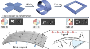Constructing artificial structures that can imitate complex topological transformation with sophisticated functions is challenging. Now, using topological operations involving ‘glue–cut’ processes, the global conformational change of topology-programmed DNA origami has been demonstrated. The reconfigurable DNA origami system developed here can encode signal propagation at the nanoscale.
