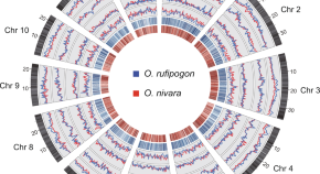 Li et al. provide a chromosome-based genome of the ancestral rice relative Oryza rufipogon using SMRT, 10x and Hi-C. Using comparative genomics analysis, they identify genes important for agronomical traits and provide insights for the evolution of reproductive systems which can facilitate rice breeding programs.