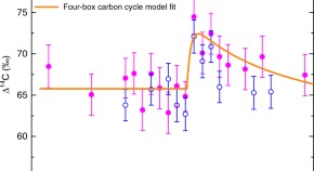 • 14C can be absorbed by trees as a result of the interaction of cosmic rays produced by high-energy phenomena with the Earth’s atmosphere. Here, the authors observe a rapid increase of 14C in an ancient buried tree from BC 3372 to BC 3371, and suggest that it could originate from a large solar proton event.