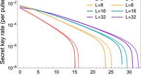 Quantum key distribution is a method to enable secure communication between two parties and prevent an eavesdropper from stealing information. Here, the authors use twin-field quantum key distribution combined with discrete phase randomisation to improve on the distance at which secure communication can be achieved.