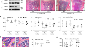 Increased inflammation during ageing promotes osteoporosis by activating osteoclast function and inhibiting osteoblasts. Here, the authors show that TGFβ1 release from bone matrix during ageing induces degradation of TRAF3 in mesenchymal progenitor cells, leading to reduced osteoblast differentiation and increased osteoclast formation, and suggesting that pharmacological stabilization of TRAF3 could ameliorate age-related osteoporosis.