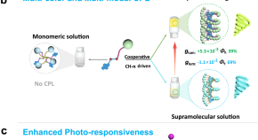 • Strategies to construct circularly polarized luminescence (CPL)-active materials with color modulation and handedness of CPL are desirable for the synthesis of chiral photo-responsive devices. Here the authors develop a CPL system based on styrylpyrenes. Benefiting from CH-π interactions between chromophores, the styrylpyrene aggregates show color-dependent CPL property and photo-responsive behavior.