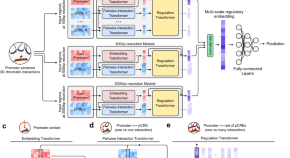Existing deep learning-based approaches for the prediction of gene expression by histone modifications (HMs) can only focus on narrow and linear genomic regions around promoters. Here, the authors address these problems by developing a transformer-based deep learning architecture named Chromoformer.