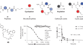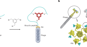 Cyclic peptides offer access to therapeutics with properties that sit between biologics and small molecules. A 2009 study reported the design, construction and selection of a phage-encoded bicyclic peptide library that used a chemical linker for cyclization. This and other advanced display technologies have accelerated the de novo discovery of functional cyclic peptides.