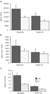 RESULTS: AA exhibited higher β-cell activity, and insulin and GLP-1 concentrations than Caucasians. Octreotide-LAR suppressed the insulin and GLP-1 levels in both groups.