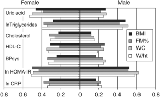 At the population level, measurement of body FM has no advantage over BMI and WC in the prediction of obesity-related metabolic risk. Although measures of central adiposity (WC, WC/ht) tended to show closer associations with risk factors than measures of general adiposity, the differences were small and depended on the type of risk factor and sex, suggesting an equivalent value of methods.