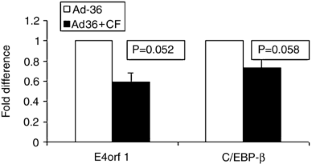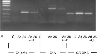 The results showed that Ad-36, but not Ad-2, expresses viral mRNA. Ad-36 gene expression peaked at 2–4 days postinoculation and very low levels persisted after day 7. Despite the viral mRNA expression, Ad-36 infection of 3T3-L1 cells was abortive as indicated by a progressive decrease in viral DNA quantity. Attenuation of Ad-36 mRNA expression by Cidofovir reduced the adipogenic effect of the virus.