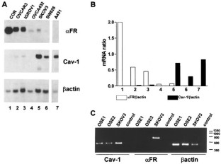 Bagnoli, M., Tomassetti, A., Figini, M. et al. Downmodulation of caveolin-1 expression in human ovarian carcinoma is directly related to α-folate receptor overexpression. Oncogene 19, 4754–4763 (2000). https://doi.org/10.1038/sj.onc.1203839