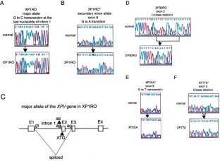 The xeroderma pigmentosum variant (XP-V) is one of the most common forms of this cancer-prone syndrome. XP groups A through G are characterized by defective nucleotide excision repair, whereas the XP-V phenotype is proficient in this pathway. The XPV gene encodes DNA polymerase η, which catalyzes an accurate translesion synthesis, indicating that the XPV gene contributes tumor suppression in normal individuals. Here we describe the genomic structure and chromosomal localization of the XPV gene, which includes 11 exons covering the entire coding sequence, lacks a TATA sequence in the upstream region of the transcription-initiation, and is located at the chromosome band 6p21.1-6p12. Analyses of patient-derived XP-V cell lines strongly suggested that three of four cell lines carried homozygous mutations in the XPV gene. The fourth cell line, XP1RO, carried heterozygous point mutations in the XPV gene, one of which was located at the splice acceptor site of exon 2, resulting in the omission of exon 2 from the mature mRNA. These findings provide a basis for diagnosis and therapy of XP-V patients.