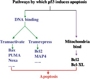 p53 is frequently mutated in cancer and as a result is one of the most intensely studied tumour suppressors. Analysis of the primitive forms of p53 found in Caenorhabditis elegans and Drosophila, alongside studies using transgenic mouse models, indicate that the induction of apoptosis is both the most conserved function of p53 and vital for tumour suppression. p53-mediated apoptosis occurs through a combination of mechanisms which include pathways that are both dependent and independent of alterations in gene expression. In response to genotoxic insult, these pathways probably act together, thereby amplifying the apoptotic signal. However, the picture is complicated because the p53 activity is determined by stress type and individual cellular characteristics. The numerous p53 responsive genes that have been identified also provide further means of controlling the actions of p53. The recent discoveries of proteins that interact with p53 and specifically regulate the ability of p53 to trigger apoptosis have provided further mechanistic insights into the role of p53 in inducing cell death. Understanding the molecular basis of the proapoptotic action of p53 can assist in our quest to reintroduce or reactivate p53 in human tumours.
