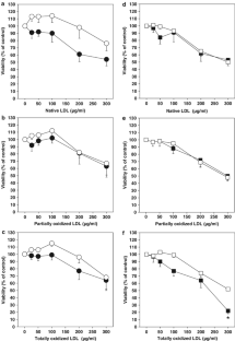 The LDL of six smokers and six nonsmokers on habitual high fish diet was isolated before and after an 8-week supplementation of vitamin E (800 IU/day). LDL was oxidized by incubation with CuSO4. Cytotoxicity of LDL oxidized to different degrees on endothelial cells was investigated in vitro in these two groups.