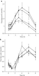 Brynes AE, Mark Edwards C, Ghatei MA, Dornhorst A, Morgan LM, Bloom SR et al. (2003). A randomised four-intervention crossover study investigating the effect of carbohydrates on daytime profiles of insulin, glucose, non-esterified fatty acids and triacylglycerols in middle-aged men. Br J Nutr 89, 207–218.