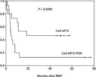 Chao NJ, Schmidt C, Nilan J et al. Cyclosporine, methotrexate, and prednisone compared with cyclosporine and prednisone for prophylaxis of acute graft-versus-host disease New Engl J Med 1993 329: 1225–1230