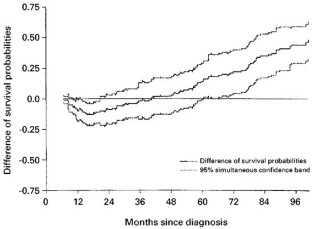 Zhang MJ, Klein JP . Confidence bands for the difference of two survival curves under proportional hazards model Lifetime Data Analysis 2001 7: 243–254