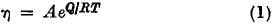 INVESTIGATIONS of the viscosities of dilute solutions of cellulose derivatives1,2 over a range of temperature have shown that the pre-exponential term A and the apparent activation energy of viscous flow Q in the viscosity-temperature relationship: