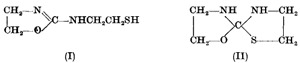 IN the preparation of the disulphide of 2-(2-mercapto-ethylamino)-2-oxazoline from 2-methylthio-2-oxazoline and 2-mercaptoethylamine hydrochloride, an intermediate with anomalous properties was encountered1. The properties of the intermediate, C5H10N2OS, were not consistent with its formulation as the ancitipated 2-(2-mercapto-ethylamino)-2-oxazoline (I), and spectroscopic evidence (infra-red and nuclear magnetic resonance spectra) suggested the possibility that the novel heterocyclic spiran (II) had been obtained. In order to establish the structure of this anomalous intermediate unambiguously, we undertook an X-ray crystal-structure analysis.