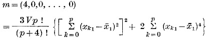 Because any non-pathological domain can be “triangulated” into simplexes, it is convenient to have a formula for the generalized moments of inertia of a simplex the vertices of which are xk = (xk1, …, xkp), (k = 0,1, …, p). It can be shown that m(ν) is equal to the coefficient of … in