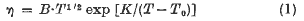 describes the atmospheric pressure viscosities of many liquids with remarkable accuracy. Equation (1) was obtained from the Cohen and Turnbull relationship between the diffusion coefficient D and “the average free volume per molecule”, Vf, defined by Vf = v̄−v0, where v̄ is the average volume per molecule in the liquid and v0 the van der Waals volume of the molecule3.