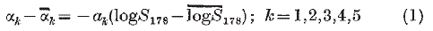 where k corresponds to the different combinations of frequencies from which the spectral index αk was determined, that is: α1=α86−178 α2=α178−750 α3=α750−1,400 α4=α86−750 α5=α86−1,400 The bar in equation (1) means the average over all the radio sources.