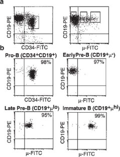 Bertrand FE, Billips LG, Burrows PD, Kubagawa H, Schroeder HW Jr . IgH gene segment transcription and rearrangement prior to surface expression of the pan B cell marker CD19 in normal human bone marrow Blood 1997 90: 736–744