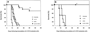 Gołąb J, Zagożdżon R, Kozar K, Kamiński R, Giermasz A, Stokłosa T, Lasek W, Jakobisiak M . Potentiatied anti-tumor effectiveness of combined therapy with interleukin-12 and mitoxantrone of L1210 leukemia in vivo Oncol Rep 2000 7: 177–181